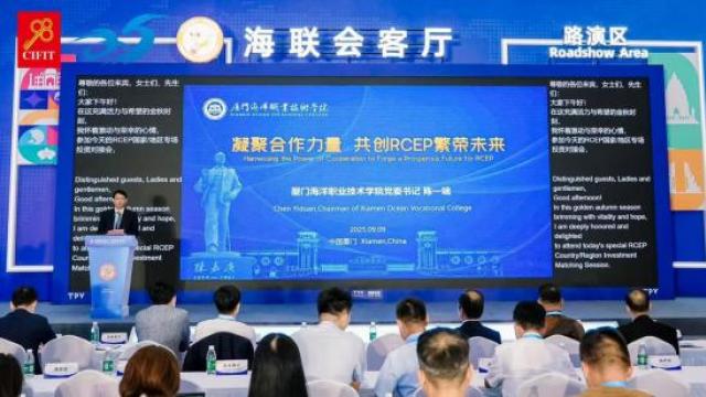 作为本次活动的主要承办方,厦门海洋职业技术学院党委书记陈一端作致辞发言。他表示,在RCEP协定深入实施的背景下,本次对接会既是响应国家深化区域经济合作战略的具体行动,也是发挥投洽会平台优势、链接RCEP国家资源的重要举措。学校将充分发挥自身在海洋领域人才培养、校企合作、技术服务等方面优势,为推动RCEP成员国间的产业合作与人才交流提供支持,助力区域经济协同发展。