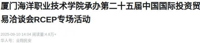 据悉,此次对接会由中国国际投资贸易洽谈会组委会联络部、厦门市商务局主办,厦门海洋职业技术学院、厦门市经贸促进会和厦门市海外综合服务(马来西亚)工作站承办。其中,厦门海洋职业技术学院作为爱国华侨领袖陈嘉庚先生创办的百年学府,积极发挥海洋办学特色优势,致力推进“职教出海”。学校在高职院校中首开先河成立“RCEP研究中心”,为外贸行业输送国际化复合型技术技能人才,与马来西亚澳鑫集团共建“现代渔业海丝学院”,赴泰国、马来西亚等国开展海马养殖技术培训和海洋渔业人才培训,为福建省职业教育服务高质量共建“一带一路”形成一系列优秀范例。