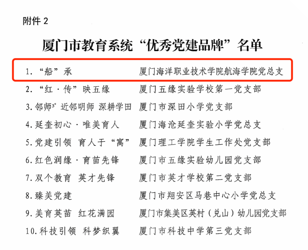 航海学院党总支坚持以习近平新时代中国特色社会主义思想铸魂育人,坚持立德树人,传承红色基因,赓续海洋特色,倾力打造“‘船’承”党建品牌。2018年创建党建品牌,2023年落成近500平米的党建中心,并发布党建宣传片,2024年品牌党课获省教育工委“书记好党课”。