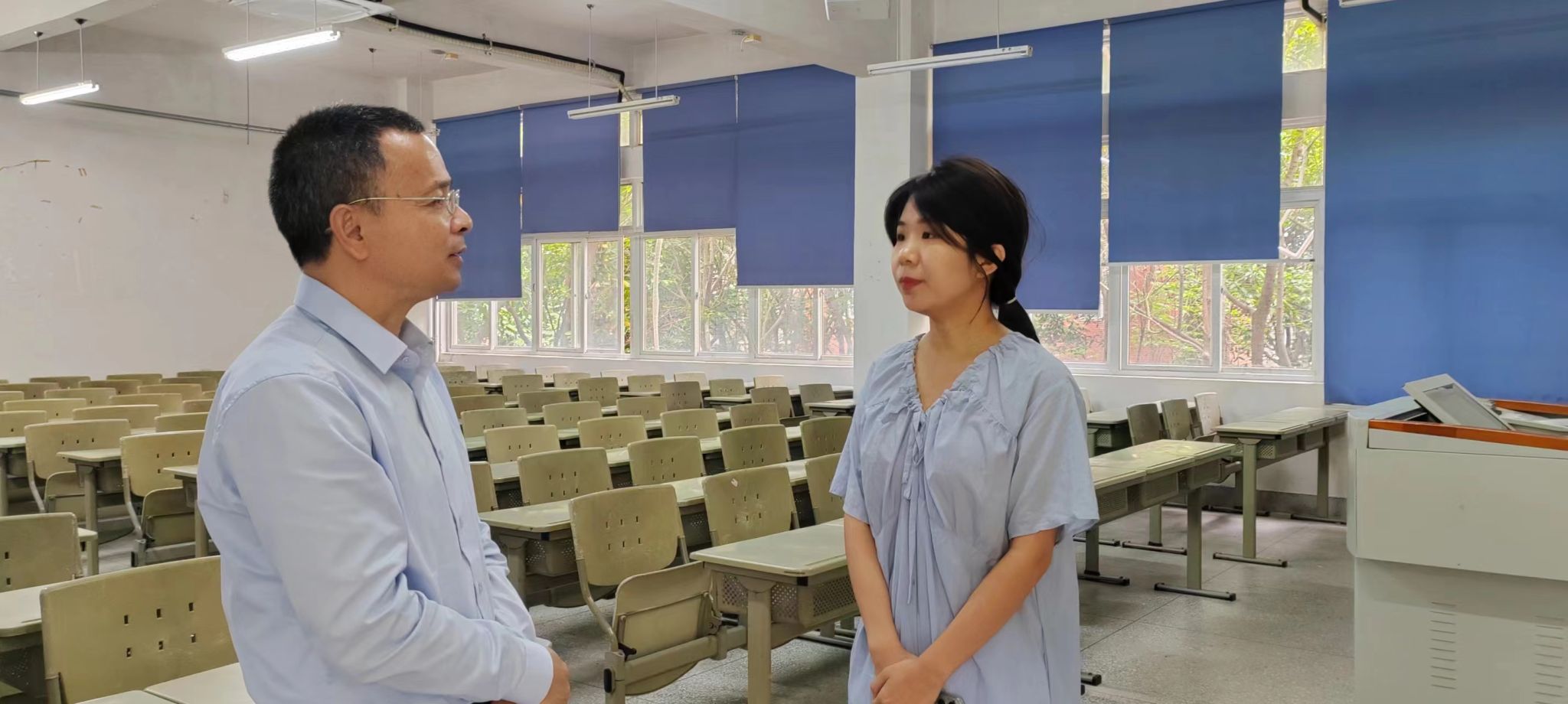课堂上,刘光明细心观察学生精神风貌和学习状态,全面了解思政课的教情学情。课后,刘光明与授课教师亲切交流,对授课教师备课、教学导入设计、师生互动等方面的表现予以肯定,并就进一步明确教学重点、创新教学方法、提升育人实效等方面提出指导性意见和建议。