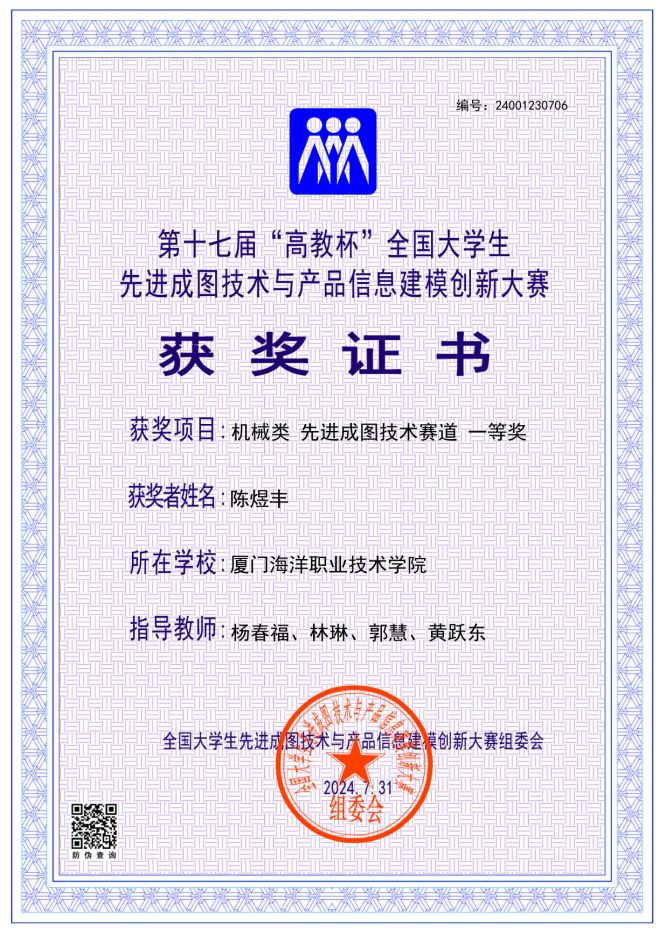 先进成图技术赛道获奖证书
