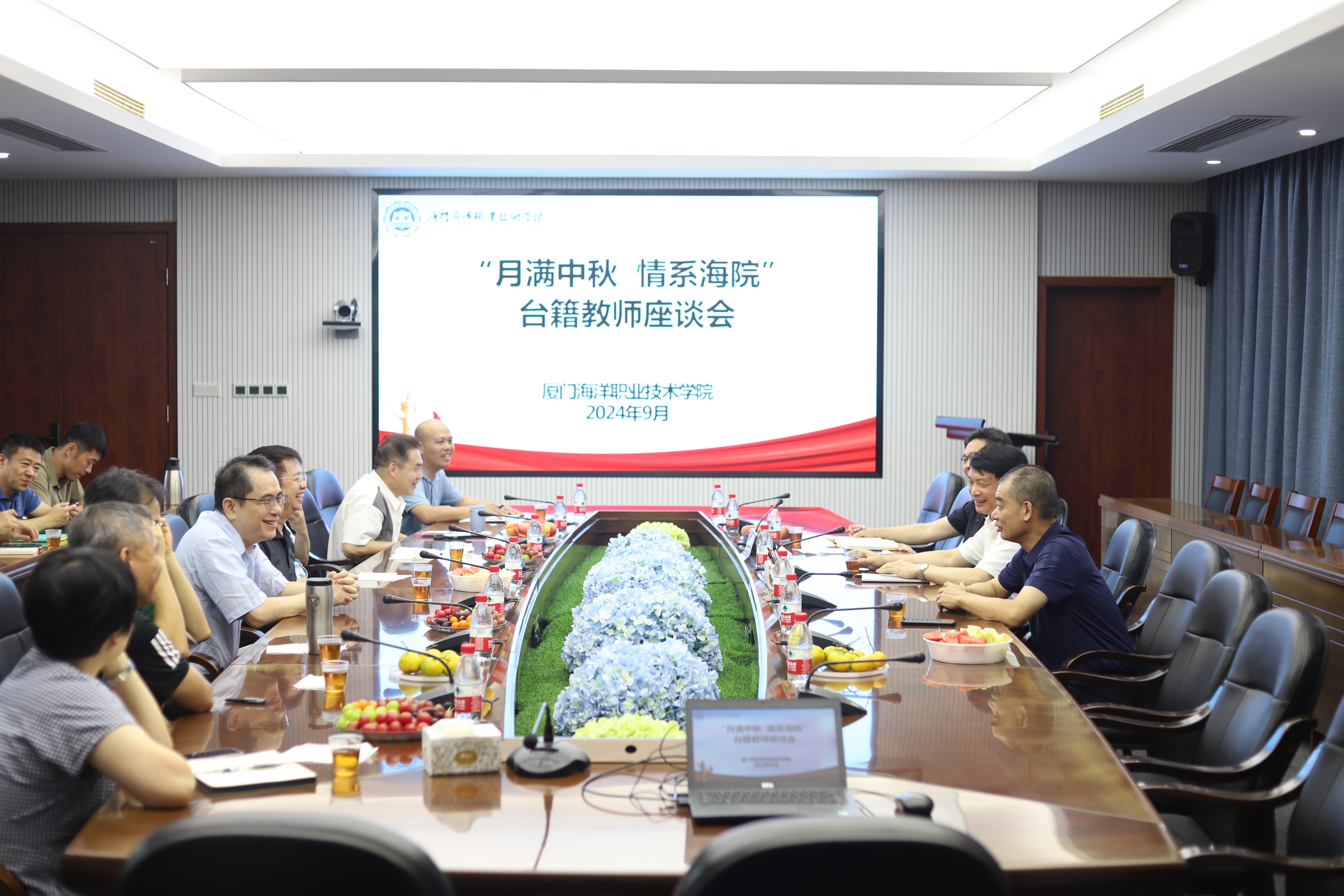 我校召开“月满中秋 情系海院”台籍教师座谈会。党委书记陈一端,党委副书记缪雄平,党委委员、组织部(统战部)部长林志洁出席座谈会。