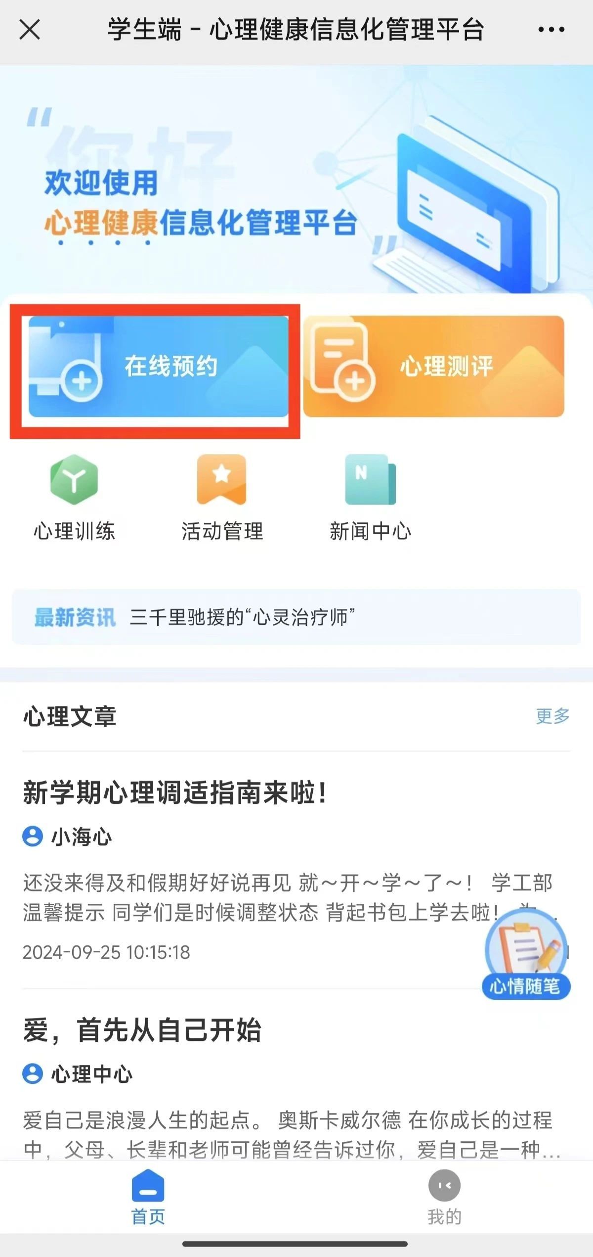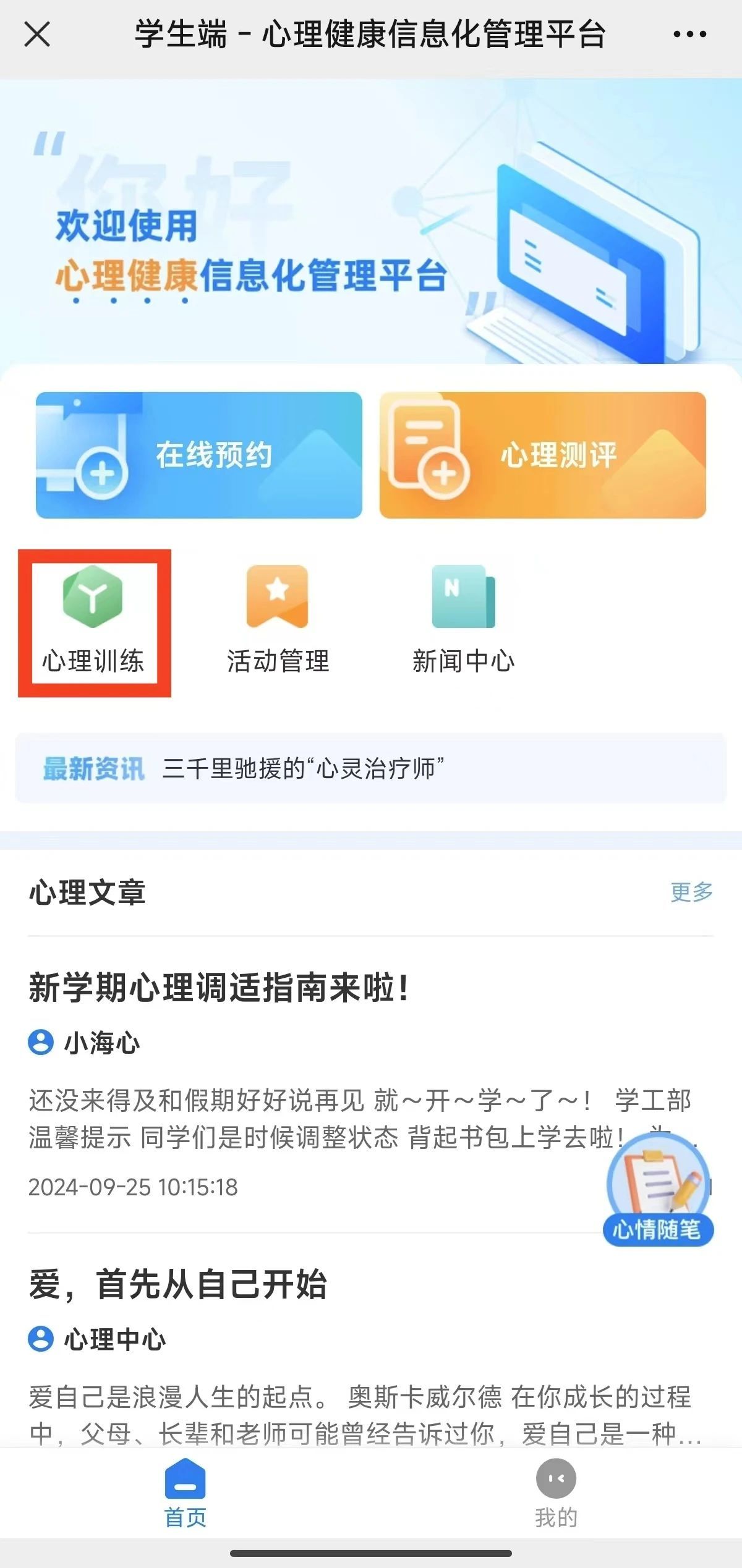 学生还可以参与线上心理训练小游戏,帮助学生提升心理素质、增强自我认知、缓解压力等。结合了娱乐性和教育性,通过有趣的游戏形式,让大家在轻松愉快的氛围中达到心理训练的目的。