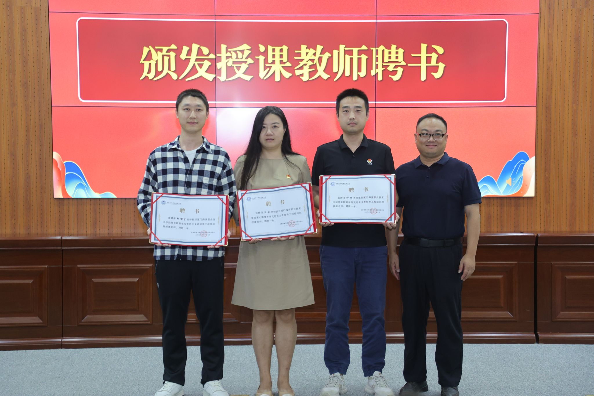 校团委梅琳老师宣读了第七期《青年马克思主义者培养工程培训班实施方案》,为培训班的各项工作提供了明确而具体的指引,校团委副书记陈锟老师为授课教师颁发聘书,并为第七期青马班授旗并赠书,希望学员接过班旗和书籍,承担起学校的期望和青马班的使命,学以致用、学有所获,成为政治坚定、理想远大、作风优良、素质全面、乐于奉献的学生骨干,成为德才兼备、全面发展的青年马克思主义者。