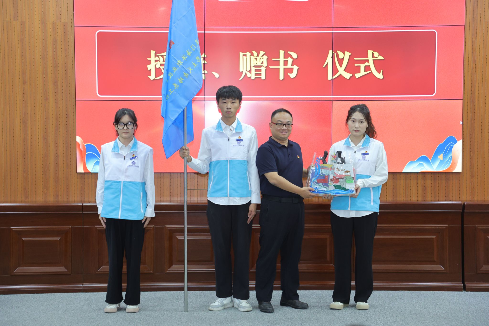 图四 陈锟副书记为青马班学员授旗赠书