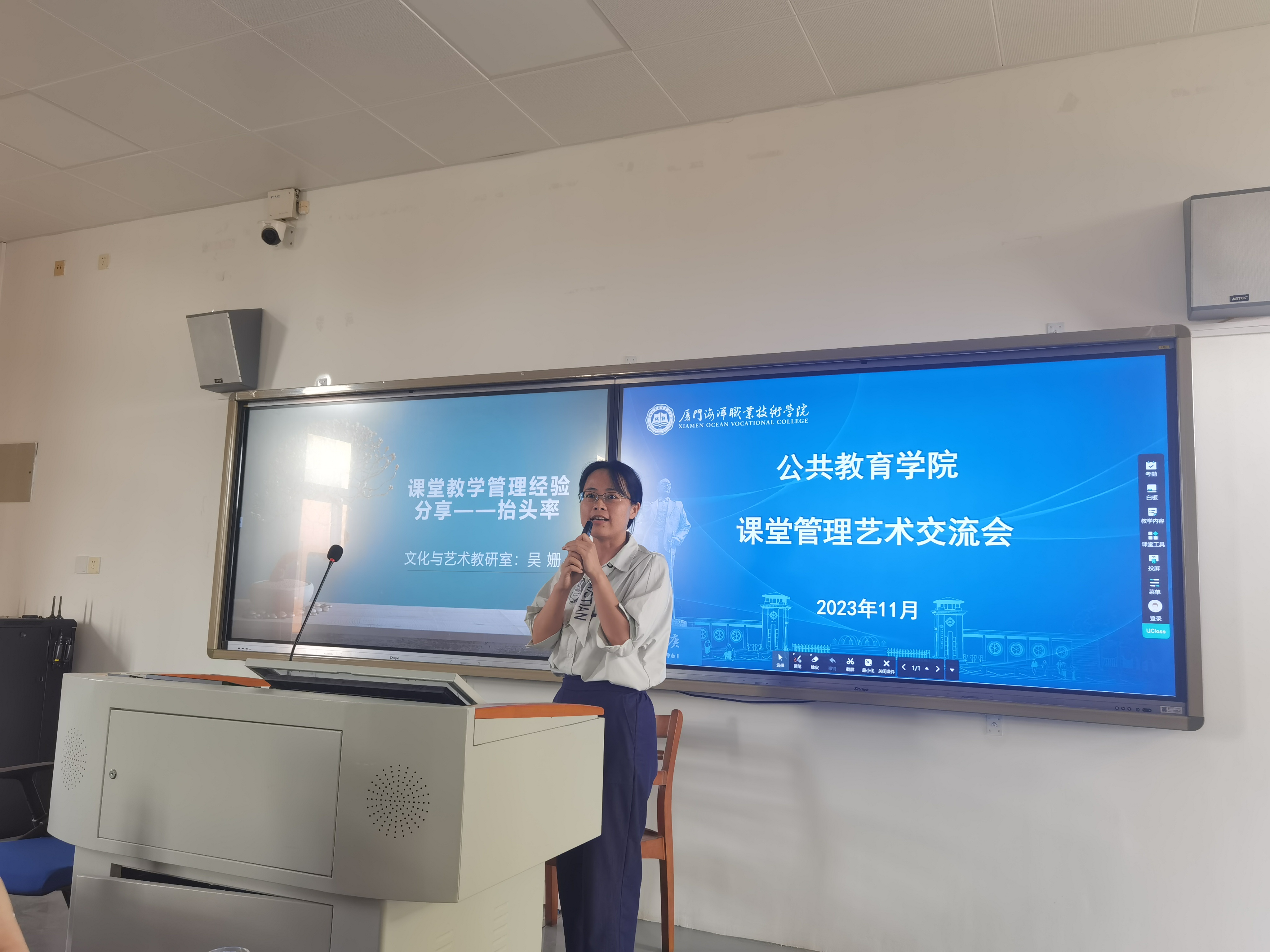 为有效提振学风、提质教风,11月7日,公共教育学院举办课堂管理艺术交流会,学院全体教师参加会议。来自数学、英语、体育、军事理论以及文化与艺术教研室的5位教师分别分享了课堂管理的丰富经验与技巧。