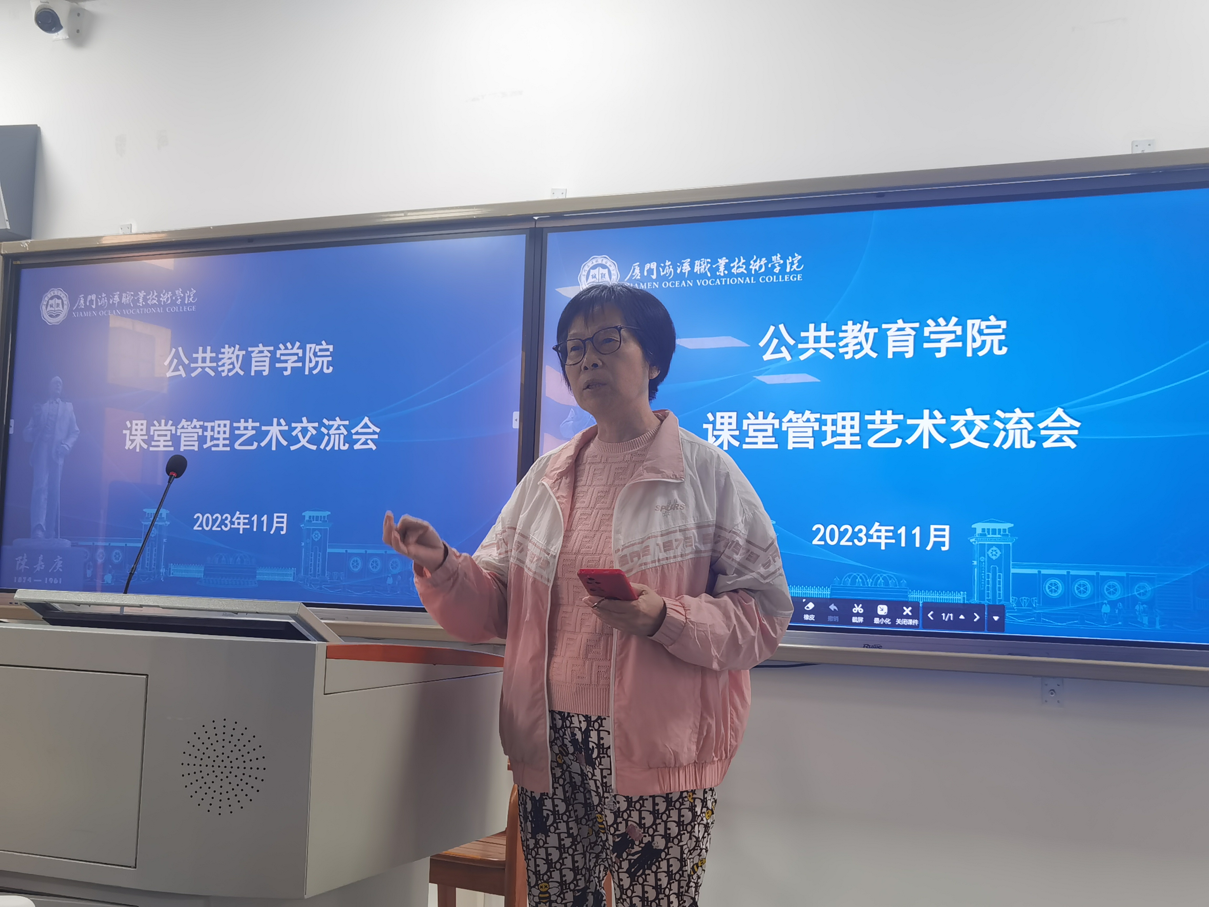 教师分享结束后,公共教育学院非编全职老师张聪义教授、缪海林教授、马爱江副教授、陈丛芸教授与郭琼珠教授分别对以上教师进行点评。教授们认为,课堂管理有奥妙无穷的学问,其作用不可低估。管理好课堂,对学生在课堂上的言行进行有序的组织引导,建立良好的教学环境,这是有效提振学风、提质教风的前提条件。