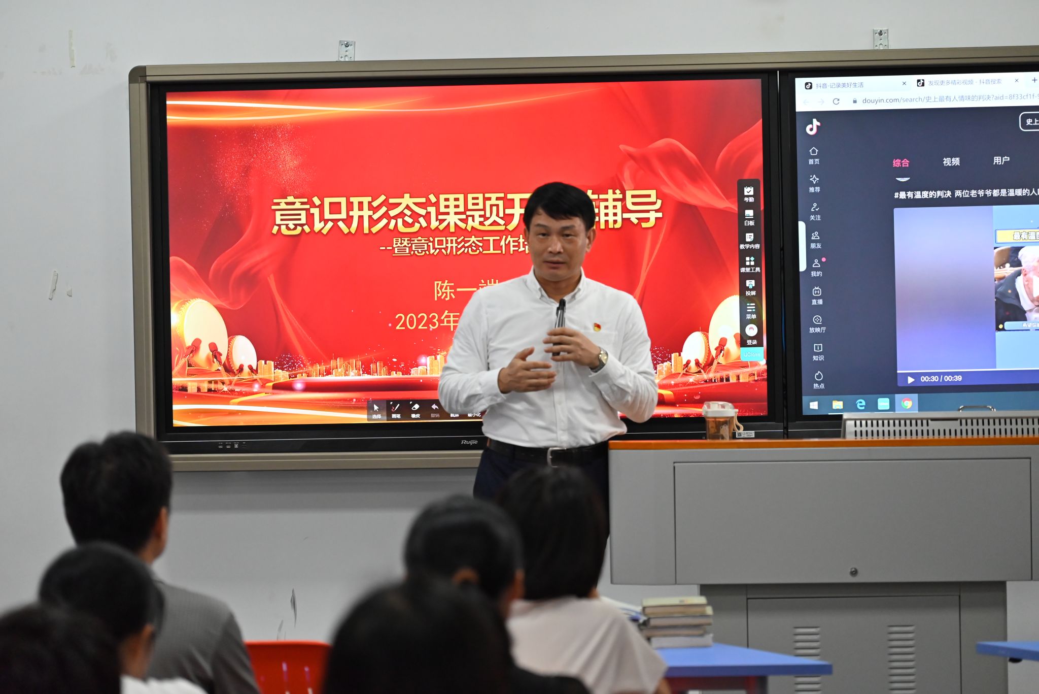 为进一步落实意识形态工作责任制,推动我校意识形态工作走在前、作表率,9月13日下午,我校党委书记陈一端作意识形态工作专题报告。