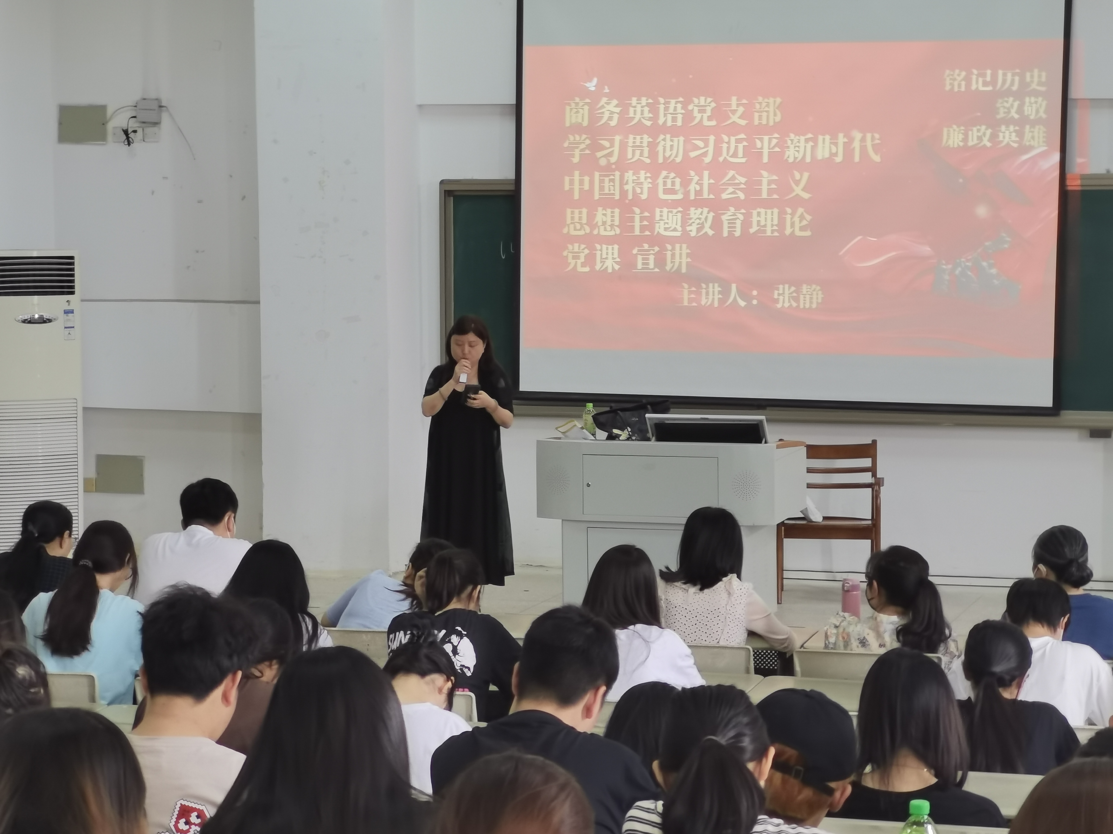 5月16日,支部书记张静老师以进讲座的形式,给全体支部党员、教研室教师以及商务英语专业学生上了以“廉政教育”为主题的党课。她结合支部参观学习市博物馆廉政主题展览的内容,从“莲”喻君子、“文物话清廉”等话题入手,给大家上了堂生动的廉洁教育主题党课。