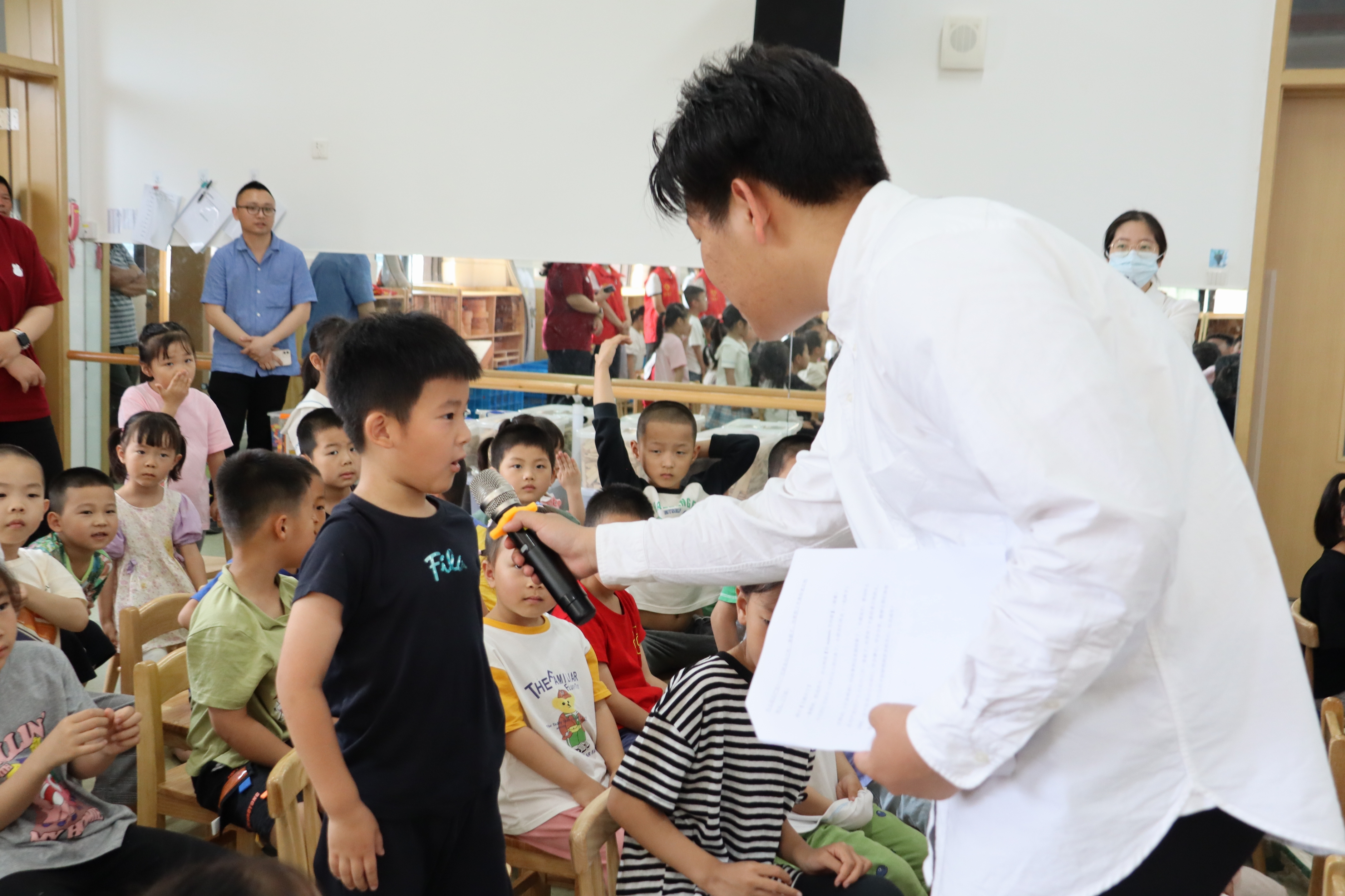 现场,宣讲队队员与小朋友在歌词互动环节中认识和了解红色人物、红色故事,小朋友们积极参与,在游戏中体验快乐,培养爱国情感。