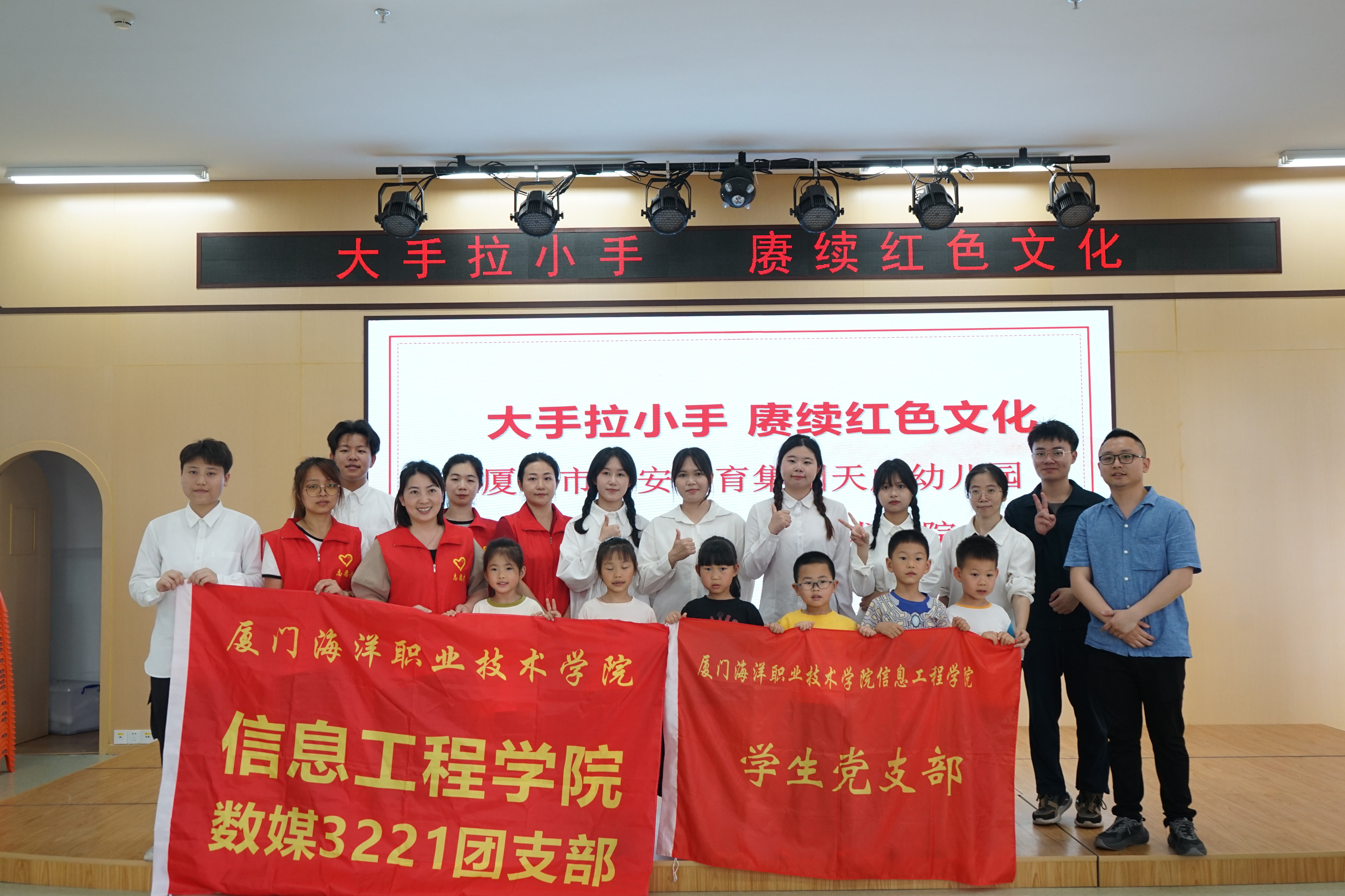 为扎实开展习近平新时代中国特色社会主义思想主题教育,传承红色基因,赓续红色文化,5月16日信息工程学院与翔安区天成幼儿园大手拉小手,开展“红色三部曲”主题教育宣讲。