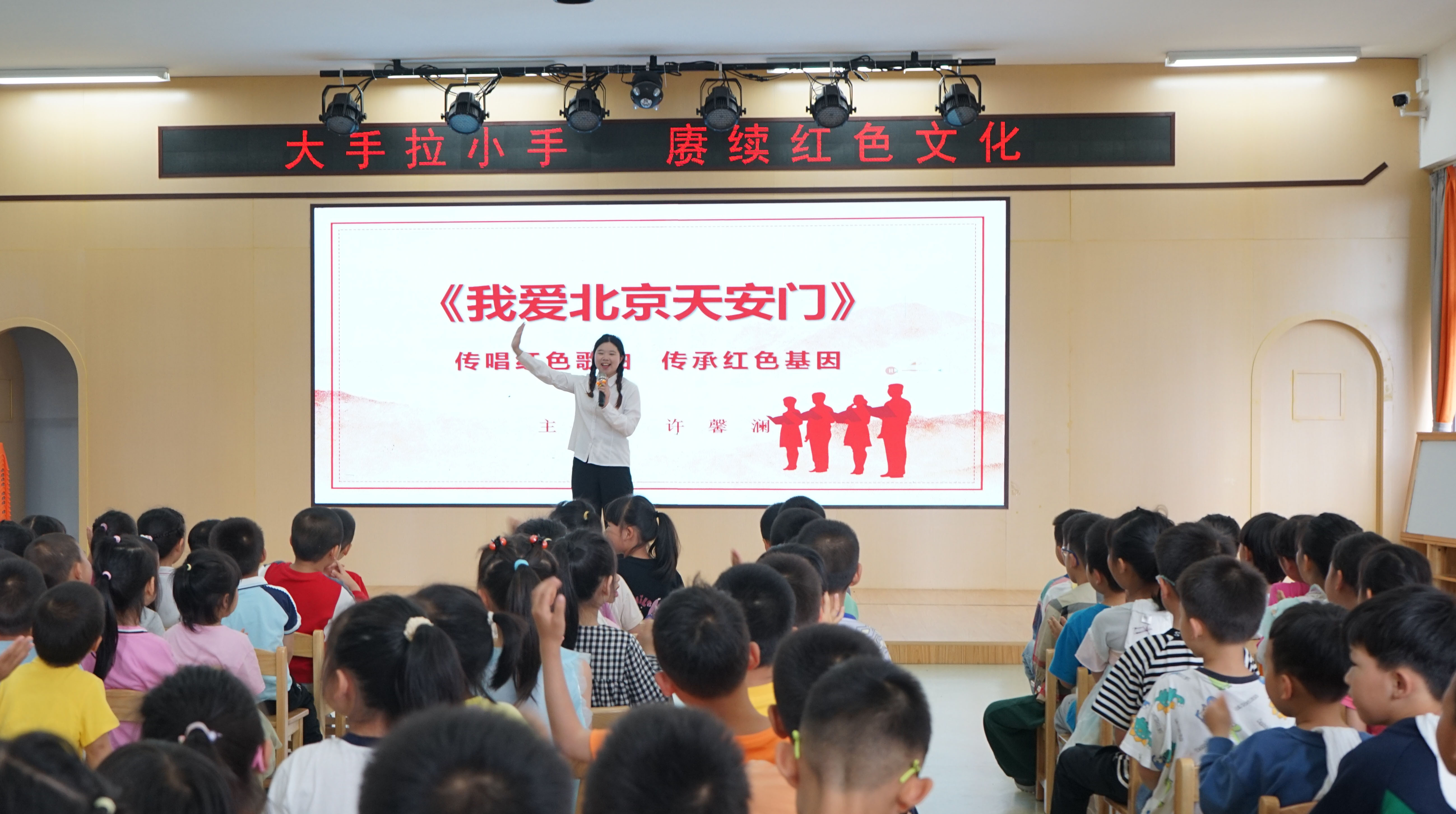“ 我爱北京天安门,天安门上太阳升 ……”“海小信”宣讲团和翔安区天成幼儿园100余名幼儿园小朋友齐唱《我爱北京天安门》,他们大手拉小手,以青年之声浸润童心,用朗朗上口的歌词表达着深切的爱国情怀。