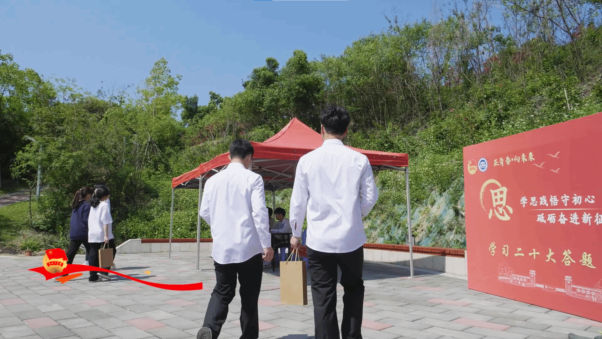 “如何继续推进实践基础上的理论创新?”“什么是中国式现代化?”“五个‘必由之路’是什么?”······二十大报告的重点内容,此时此刻正变成为帮助同学们“学习二十大报告”的互动盲盒。打开盲盒,抽到答题卡的同学们,认真阅读着《二十大报告》原文,对照着走廊两边“学习手账”加深对报告的整体把握。他们努力寻找着《二十大报告》中对于问题的原文表述,并工整地摘抄在卡片上,交给工作人员,获得第一个通关印章。以学铸魂、以学增智、以学正风、以学促干。固本培元,通过读原著学原文悟原理,坚持不懈用习近平新时代中国特色社会主义思想凝心铸魂,用党的创新理论统一思想、统一意志、统一行动,引导广大团员青年奔赴充满光荣和梦想的远征,以昂扬姿态奋进中国式现代化新征程、谱写海院高质量发展新篇章。