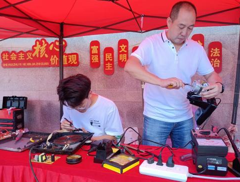 居民们纷纷带来家中有故障的电风扇、电饭煲、烧水壶等电器。在老师的指导下,队员们熟练地拿起万用表等仪器对家电进行“把脉诊断”,剪切、焊接、试机,一台台“沉睡”的家电在他们手中逐个“苏醒”。