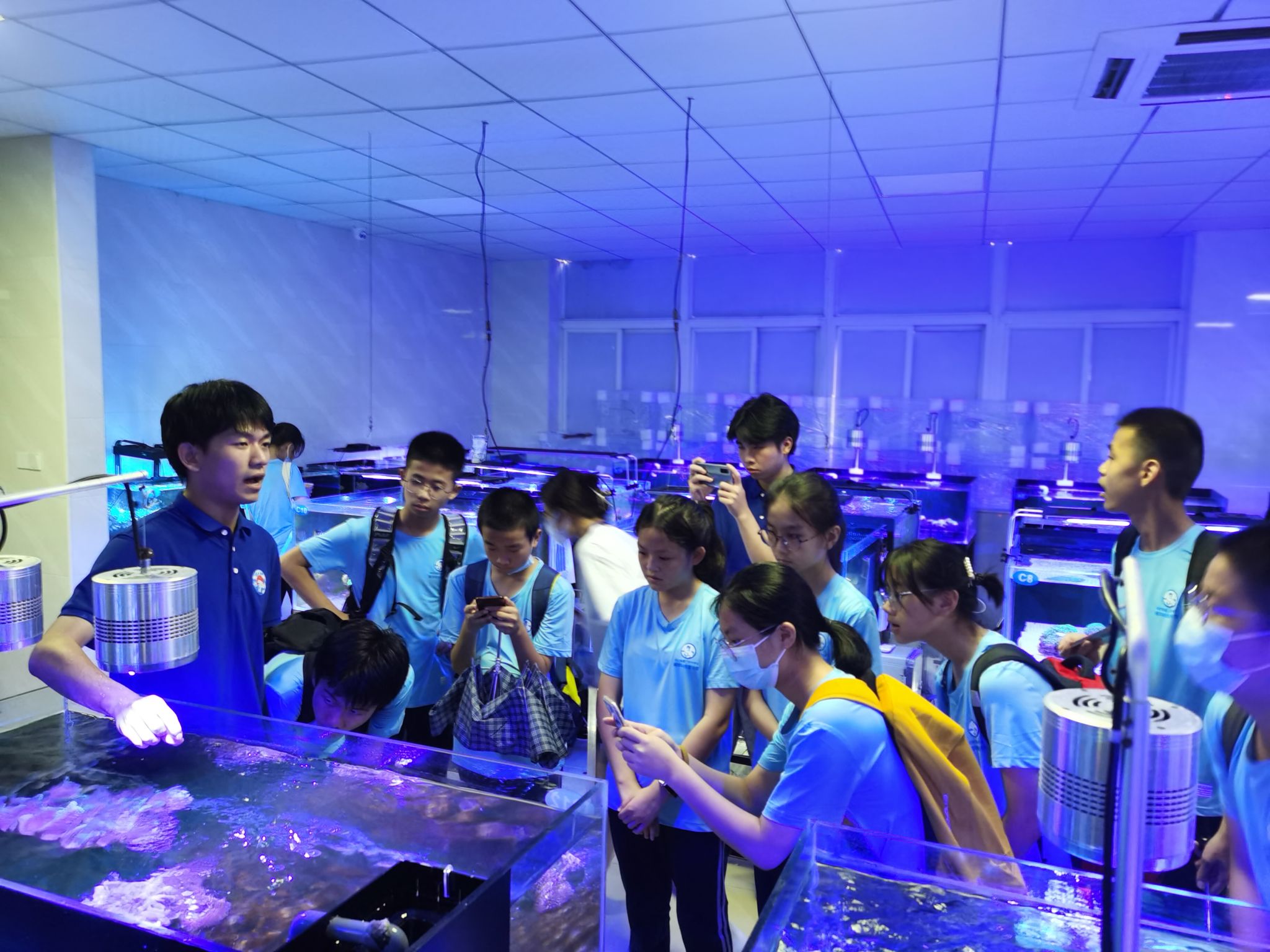 近日,“寻梦江海”暑期“三下乡”社会实践队在我院珍稀海洋生物繁育研究中心为厦门市中学生海洋科技夏令营的学员们开展海洋科普宣传,倡导保护珊瑚、爱护海洋的生态理念。