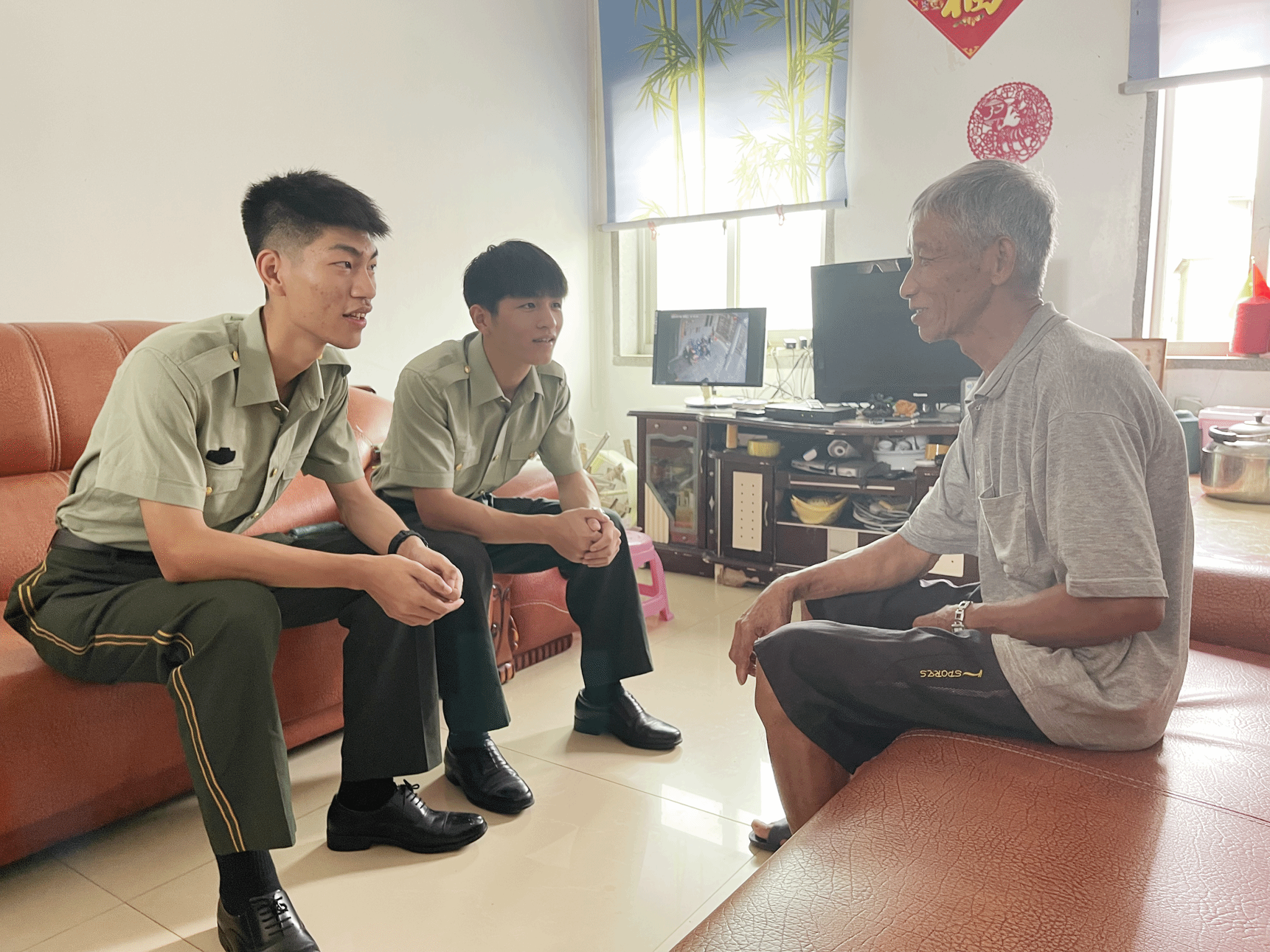 航海学院2021级学子黄伟彬、薛泽江是退役士兵,他们和退伍老兵一同追忆过往的军旅生涯,共议国之重器“福建舰”的震撼问世,展望未来辽阔前景。