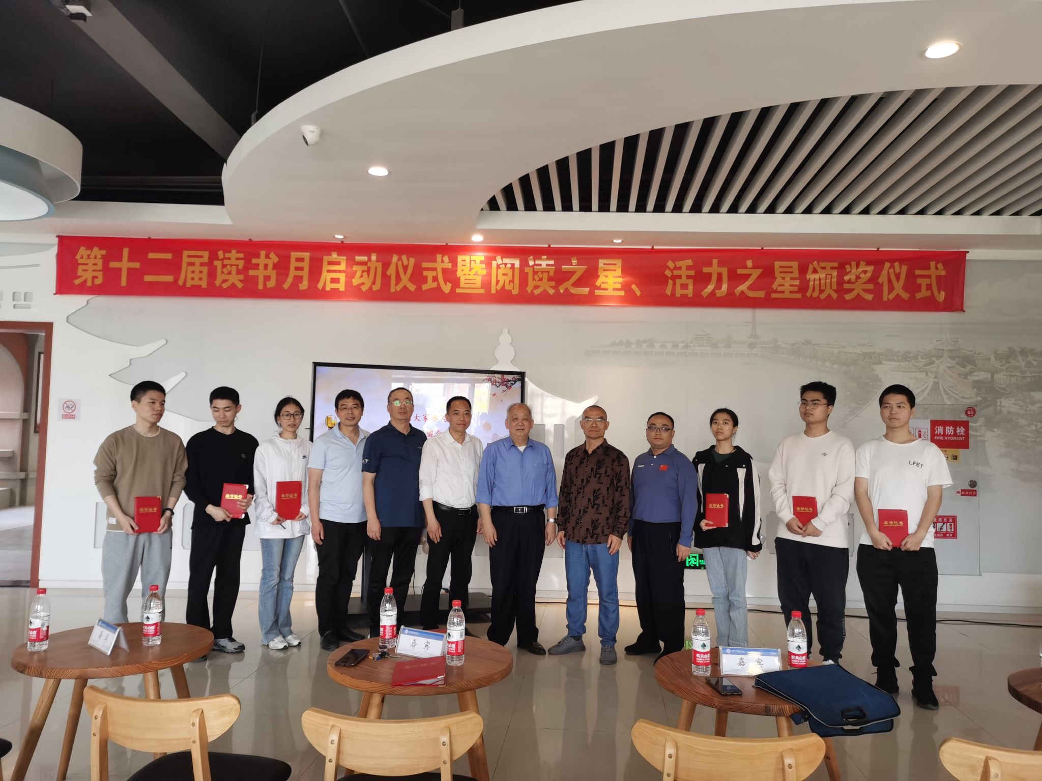读书月启动仪式上,以播放短片的形式共同回顾23年图书馆成功举办的主要阅读推广活动十余项,向在场师生简介图书馆目前概况及未来发展方向,隆重推荐本年度的各项读书月活动。图书馆馆长缪明聪在致辞中总结过去一年图书馆宣传推广工作,详细介绍颁布的奖项及评价标准,并为“阅读之星”(教师组、学生组)、“活力之星”颁奖。