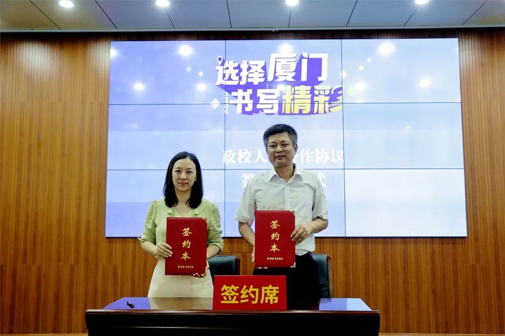 在宣讲会上,翔安区政府副区长颜莉莉面向全体毕业生,以“选择翔安,成就精彩人生”为题作翔安区城市品牌推介及政策宣讲;厦门市人才服务中心副主任陈七三以“选择厦门,书写精彩”为题,向大家简单介绍了厦门的发展机遇、就业和生活环境以及厦门优惠的人才政策;现场还举行了“政校、校企引才合作协议”签订仪式,区人社局与厦门海洋职业技术学院签订政校合作协议;我校信息工程学院与厦门鑫联信智能系统集成有限公司、宏泰集团(厦门)有限公司签订校企合作协议,将为同学们选择厦门创造更多便利条件,为同学们留厦、留翔更好就业保驾护航。