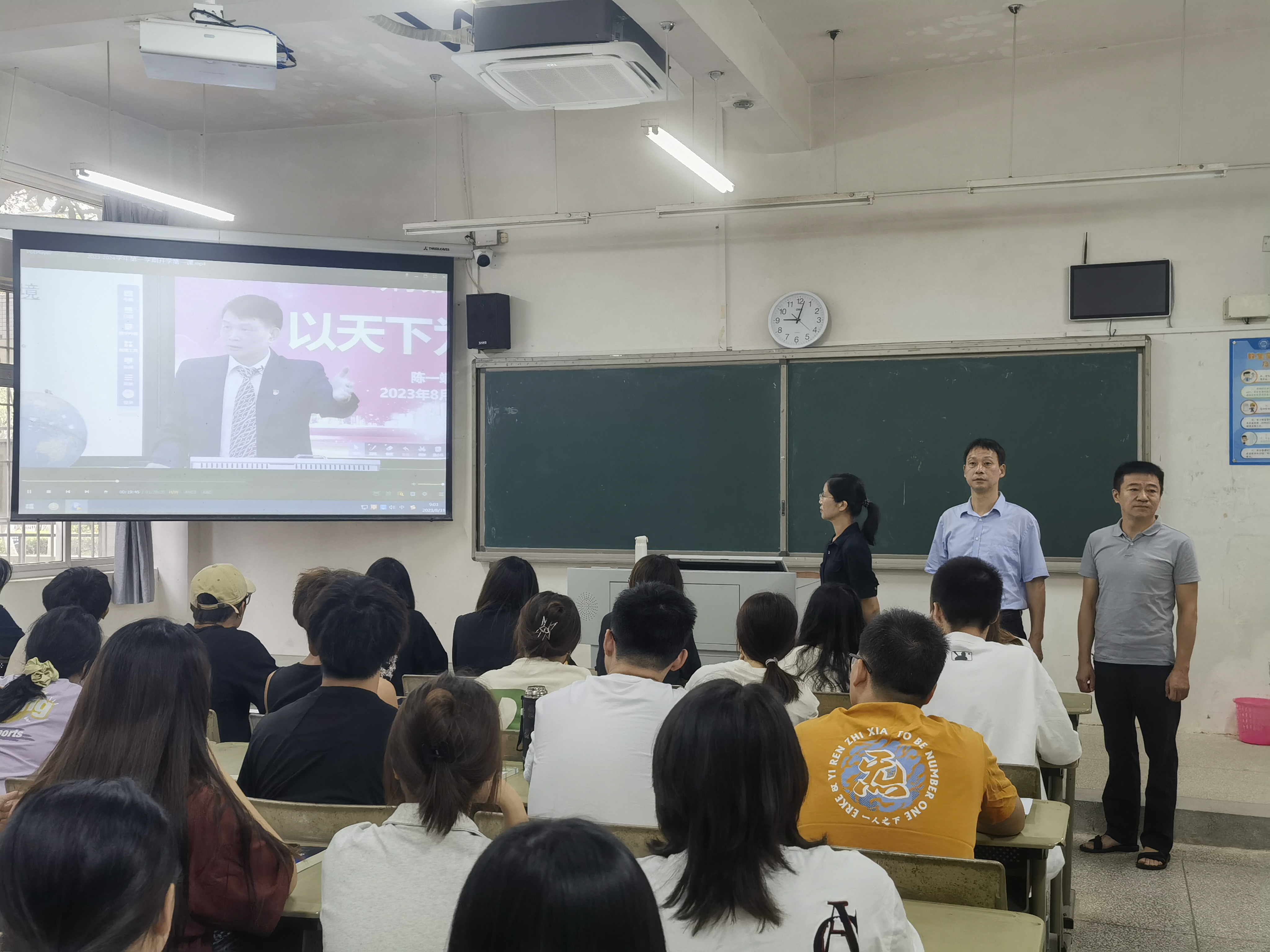 8月31日上午,我校党委书记陈一端以“以天下为己任”为题上“开学第一课”,全体在校生观看。