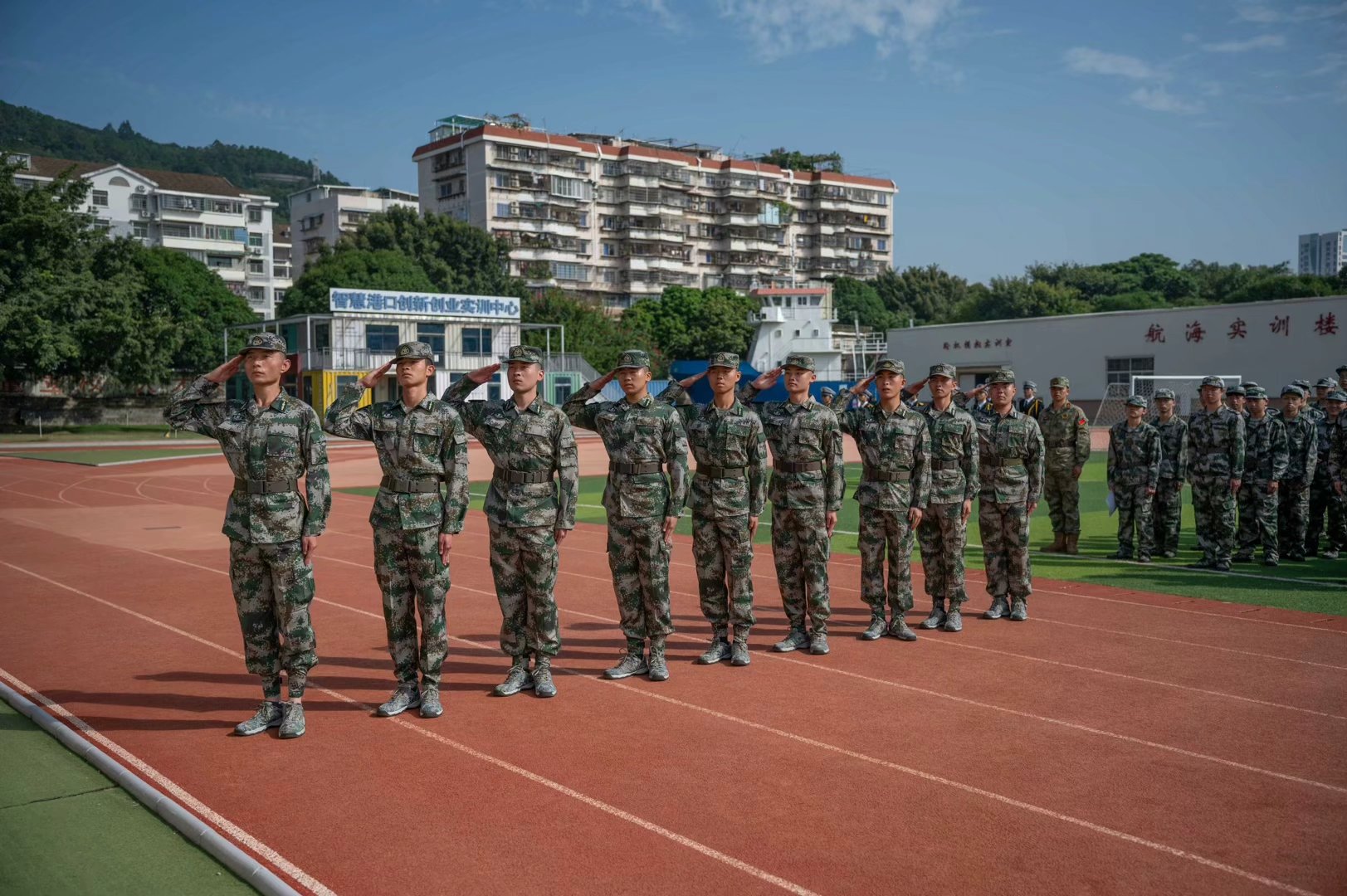 郭帅、陆运秋代表全体承训教官发言,他们表示将灵活组训、文明施训、听从指挥、以身作则。海洋文化与旅游学院陈永鑫、航海学院曾学晨作为参训学生代表发言,他们代表全体参训学生承诺:服从命令,听从指挥,尊重教官,顽强训练。